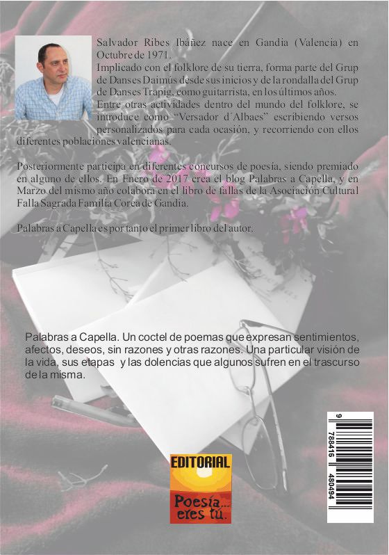 PALABRAS A CAPELLA es el último libro de Salvador Ribes Ibañez. Publicado por la Editorial Poesía eres tú en el año 2017.